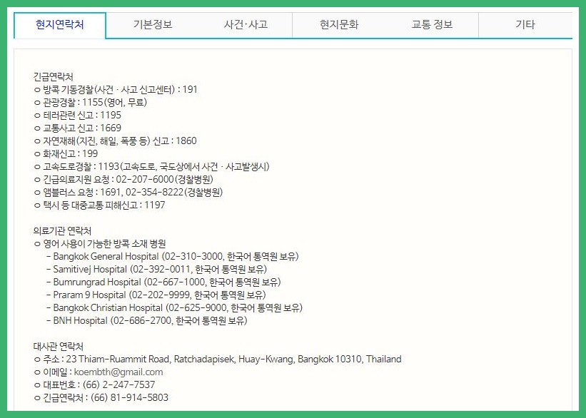 태국 여행시 현지 연락처 정보를 알려드리겠습니다.