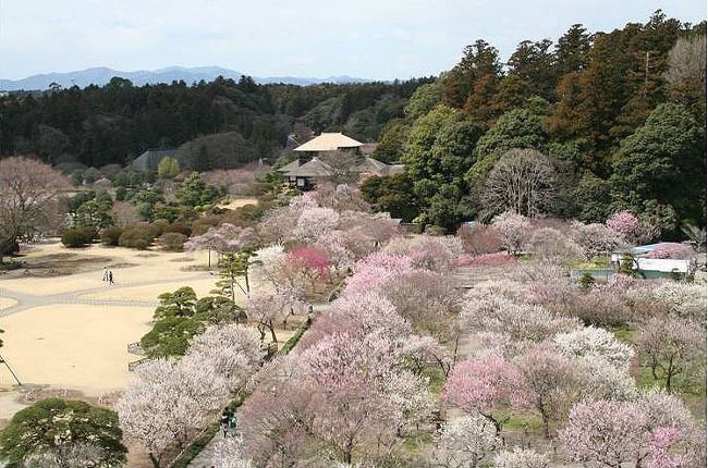 도꾸가와 나리아끼가 에도시대 말기에 만들었습니다. 현재는 도키와 공원이라 불리고 있습니다. 일본의 3대공원중에 하나로 유명하며 전쟁의 피해를 입어 황폐했으나 지금은 복구가 되었습니다. 수천의 오래 자란 매화나무가 유명한 곳입니다.