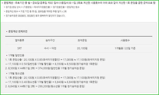 #8 SRT 정기승차권 운임계산 설명입니다.