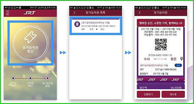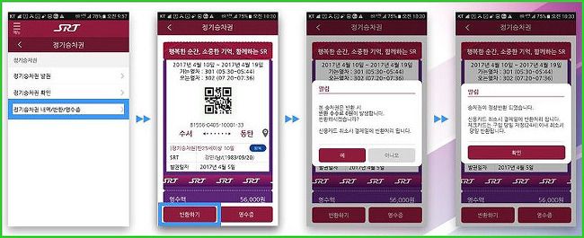 #11 SRT 정기승차권 이용화면중 SRT 정기승차권 발권 설명입니다.