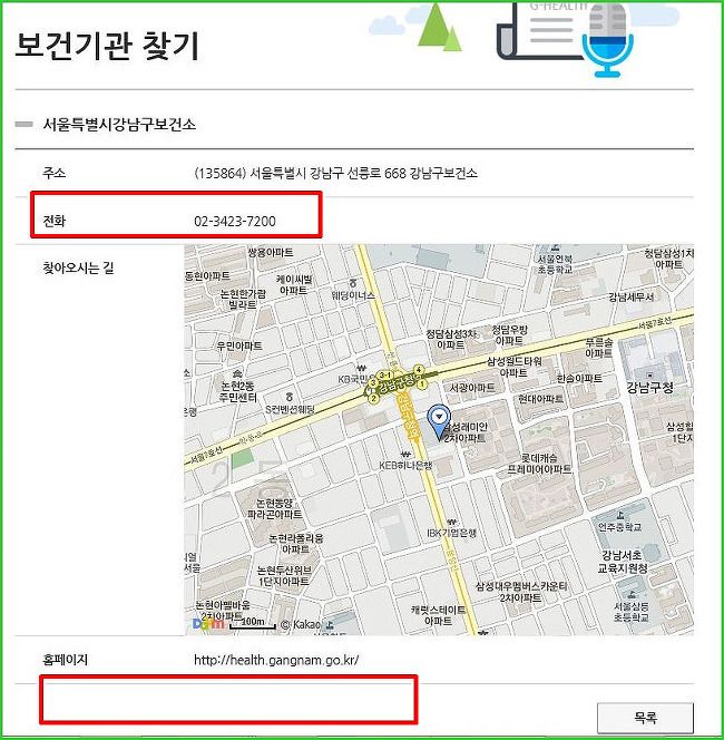 같은 보건소 찾기를 했는데 강남구 보건소찾기에서는 진료시간 정보가 나오지 않습니다. 이건뭐지? 당황하지 마세요. 어떤건 나오고 어떤건 안나온다고 당황하지 마시고 진료시간이 안나오는 보건소는 위에 보시면 전화번호가 나와있습니다. 이곳으로 전화를 하셔서 물어보시는것이 제일 좋은 방법일것 같습니다. 전화를 안하고 각 보건소 홈페이지에 들어가셔서 볼수도 있지만 제가 생각하기로는 전화로 바로 문의를 하는것이 더욱 빠른 방법일 것 같습니다.
