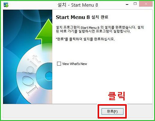 이제 설치가 완료되었습니다. 쉽지 않으신가요? 하지만 여기서 부터가 진짜 윈도우8 시작버튼 Start Menu8의 무료버전의 핵심일 수 있습니다. 다시 가보겠습니다.