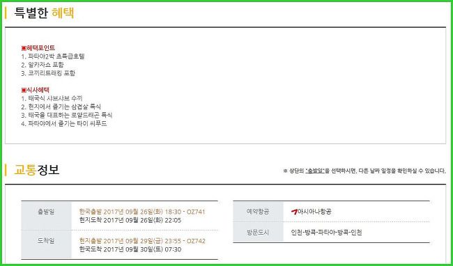 여행상품의 혜택과 교통정보등을 확인할 수 있습니다. 출발일과 도착일등을 확인하시고 교통편등을 예약을 해야겠습니다.
