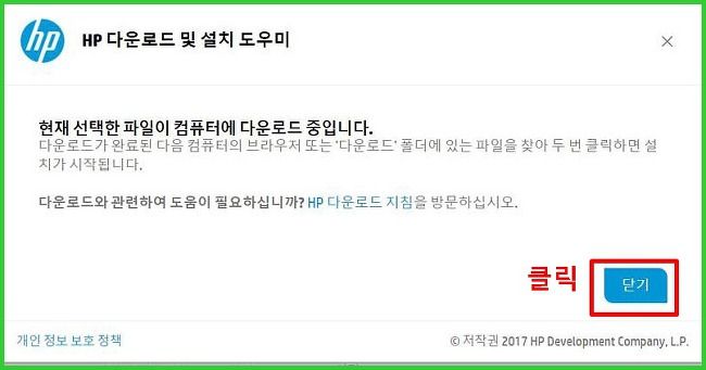 저는 크롬으로 다운받기 때문에 크롬 브라우저의 왼쪽 밑에 보시면 다운받고 있는 모습이 보이실겁니다. 파일을 다 다운받으신후 실행을 시켜 드라이버를 설치하시면 됩니다. 오늘은 이렇게 여러분들에게 hp 프린터 드라이버 다운받는 방법에 대해서 설명을 드렸는데 도움이 되셨나요?