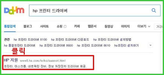 저는 다음(DAUM)에서 검색을 해보았습니다. [hp]만 쳤는데 hp 프린터 드라이버가 나옵니다. 그만큼 드라이버 다운로드를 검색을 많이하신다는 증거겠지요?