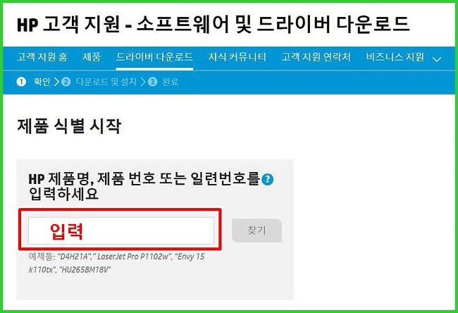 HP의 소프트웨어 및 드라이버 다운로드를 지원하는 페이지입니다. 우리는 여기서 HP 제품명이나 제품 번호 또는 일련버호를 입력하여 드라이버나 소프트웨어를 찾을 수 있습니다.
